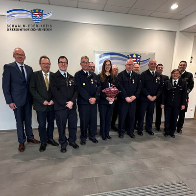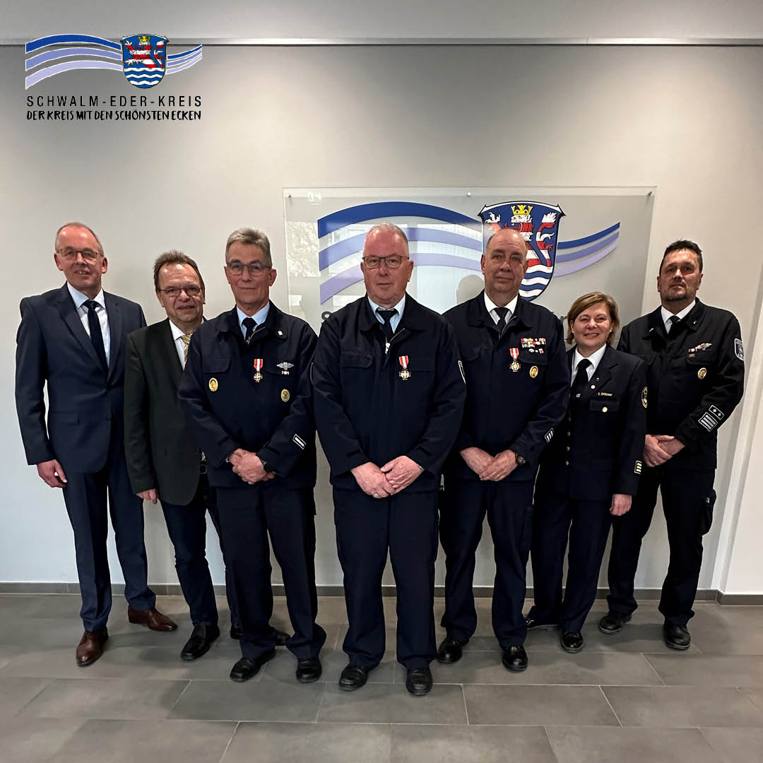 Landrat Winfried Becker verleiht Goldene Brandschutzehrenzeichen an verdiente Einsatzkräfte der Freiwilligen Feuerwehr Wabern