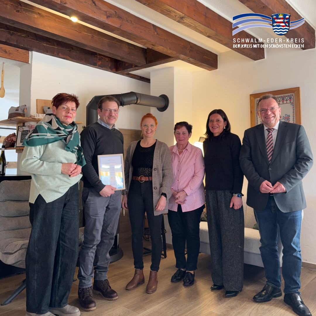 Die Übergabe der Urkunde zum 3-Sterne-Superior-Hotel durch Landrat Winfried Becker an die Familie Wettlaufer erfolgte im Beisein der 1. Stadträtin Claudia Ullrich, der Fachbereichsleiterin der Wirtschaftsförderung des Schwalm-Eder-Kreises Tatjana Grau-Becker und der DEHOGA Kreisverbandsvorsitzenden Theresia Liebermann.