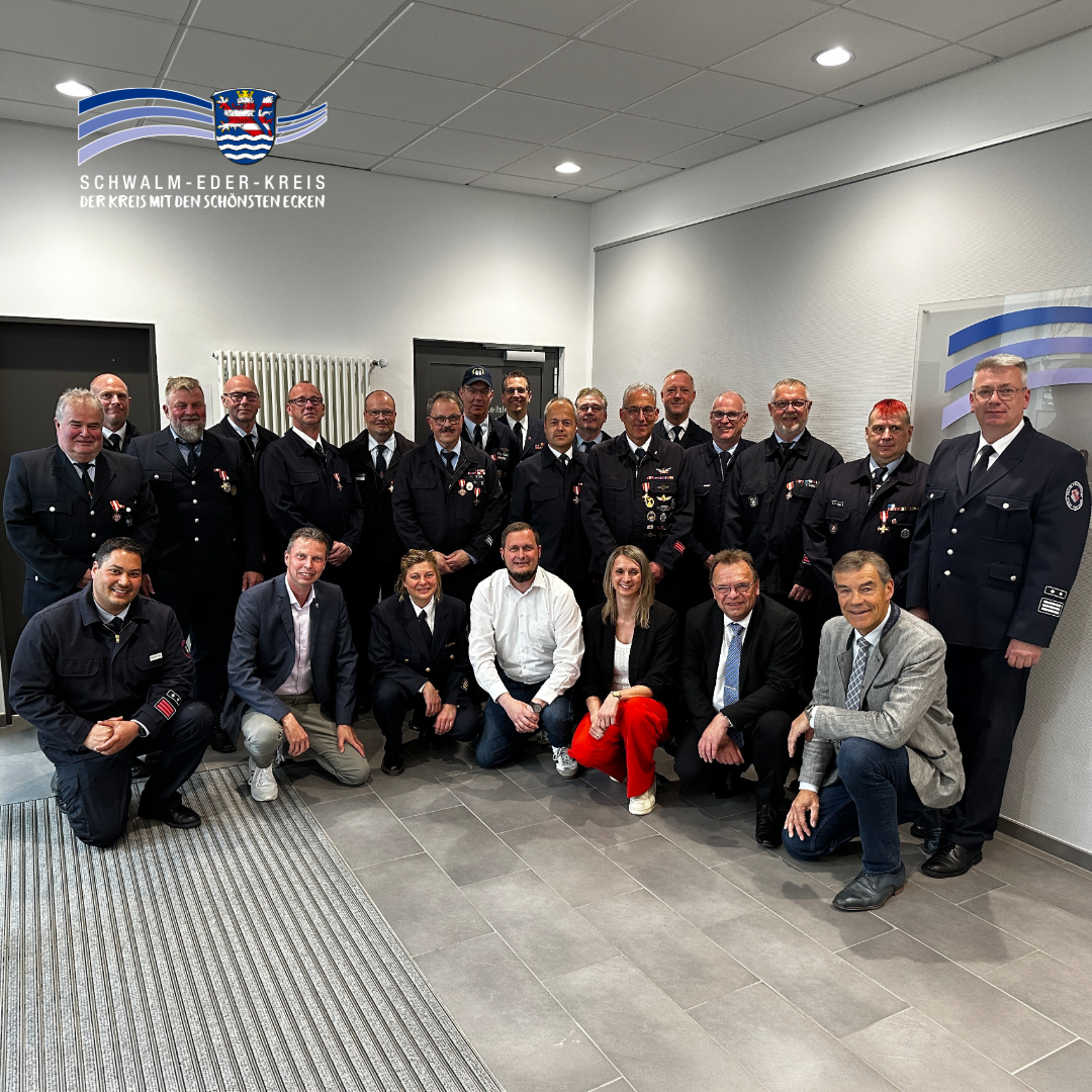 Sie leisten seit 40 bzw. 50 Jahren aktiven Dienst für ihre Mitbürgerinnen und Mitbürgern. Vor Kurzem durfte Landrat Winfried Becker 14 Feuerwehrkameraden der Freiwilligen Feuerwehren Frielendorf, Fritzlar, Gudensberg und Jesberg mit dem Goldenen Brandschutzehrenzeichen auszeichnen. Sie sind 365 Tage im Jahr rund um die Uhr in Alarmbereitschaft und stets zur Stelle – nicht nur wenn es brennt, sondern auch bei technischen Hilfeleistungen, wie etwa bei Unfällen oder Unwetter-Ereignissen.
