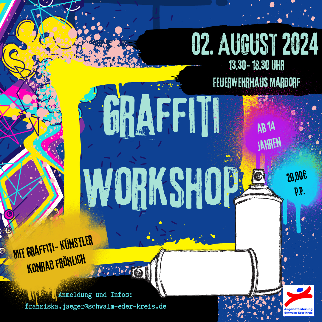 Rund um Spraydosen und Marker dreht sich alles in einem Graffiti-Workshop, den die Jugendförderung des Schwalm-Eder-Kreises in den Sommerferien zusammen mit dem Graffiti-Künstler Konrad Fröhlich anbietet. Die Teilnehmenden werden professionell Schritt für Schritt hin zu ihrem eigenen Kunstwerk angeleitet und erhalten dabei spannende und lehrreiche Tipps und Einblicke in die Welt des Graffitis.
