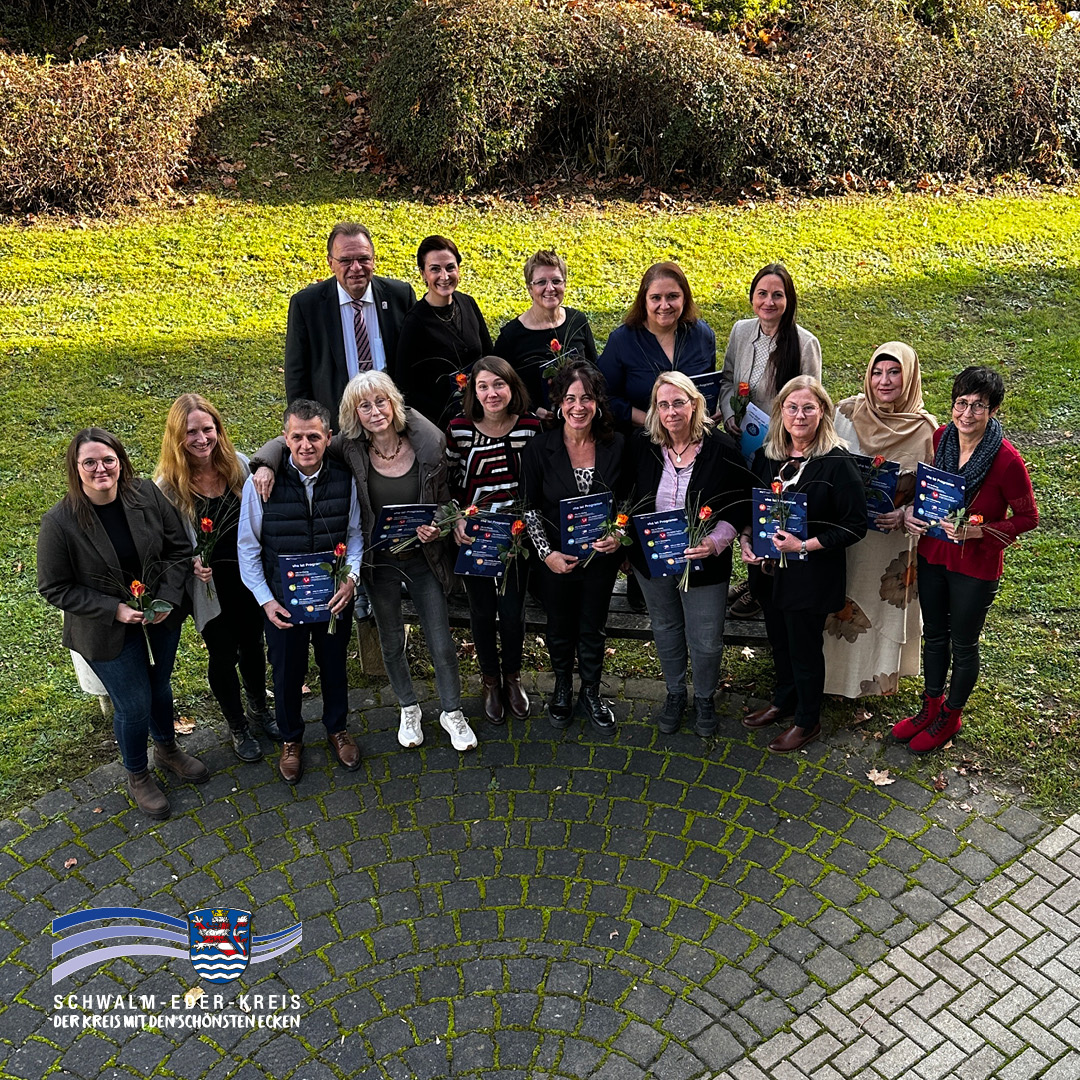 Nach Abschluss des Kurses konnten 16 Teilnehmende ihre Zertifikate im Rahmen einer kleinen Feierstunde in der Kreisverwaltung entgegennehmen und sind nun bestens vorbereitet, um den Anforderungen ihres Arbeitsfeldes souverän zu begegnen. Eine Absolventin fasst ihre Erfahrung zusammen: „Obwohl ich schon lange im schulischen Umfeld tätig bin, hat mich die Weiterbildung sehr bereichert. Ich fühle mich jetzt noch sicherer im Umgang mit den vielfältigen Situationen, die der Schulalltag mit sich bringt.“