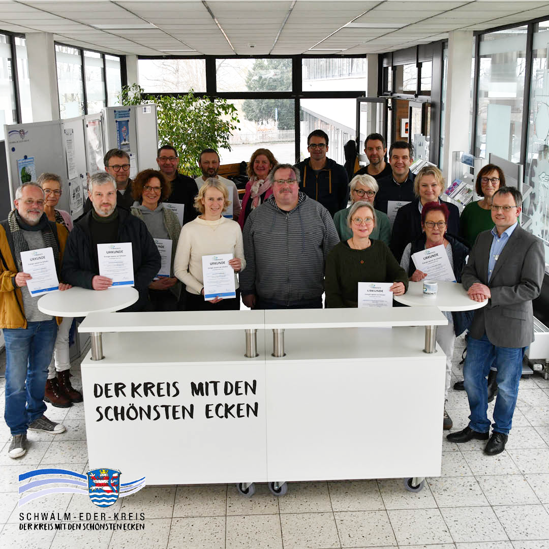 Während einer Feierstunde kamen Vertreterinnen und Vertreter der zu prämierenden Schulen in die Kreisverwaltung Homberg, um ihre Urkunden entgegen zu nehmen sowie die Höhe der jeweiligen Prämie zu erfahren, die vom Schwalm-Eder-Kreis nun an die einzelnen Schulen angewiesen wird.