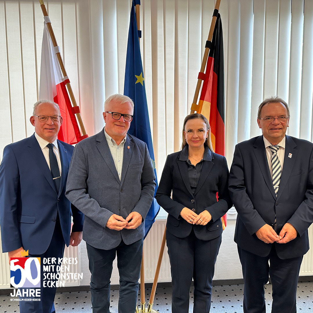 Die Partnerschaft zwischen den beiden Landkreisen, Pila in Polen und dem Schwalm-Eder-Kreis, besteht seit über zwanzig Jahren. Seitdem finden jährlich gegenseitige Besuche und Austausche auf Verwaltungsebene statt. In diesem Jahr haben in Pila Regionalwahlen stattgefunden, bei denen eine neue Kreisspitze gewählt wurde. Auf Einladung von Landrat Winfried Becker besuchten der neu gewählte Vizelandrat Stefan Kowal und die neue Kreistagsvorsitzende Małgorzata Karwacka gemeinsam mit Kolleginnen und Kollegen aus der Kreisverwaltung und Abgeordneten des Kreistages Anfang Oktober den Landkreis.