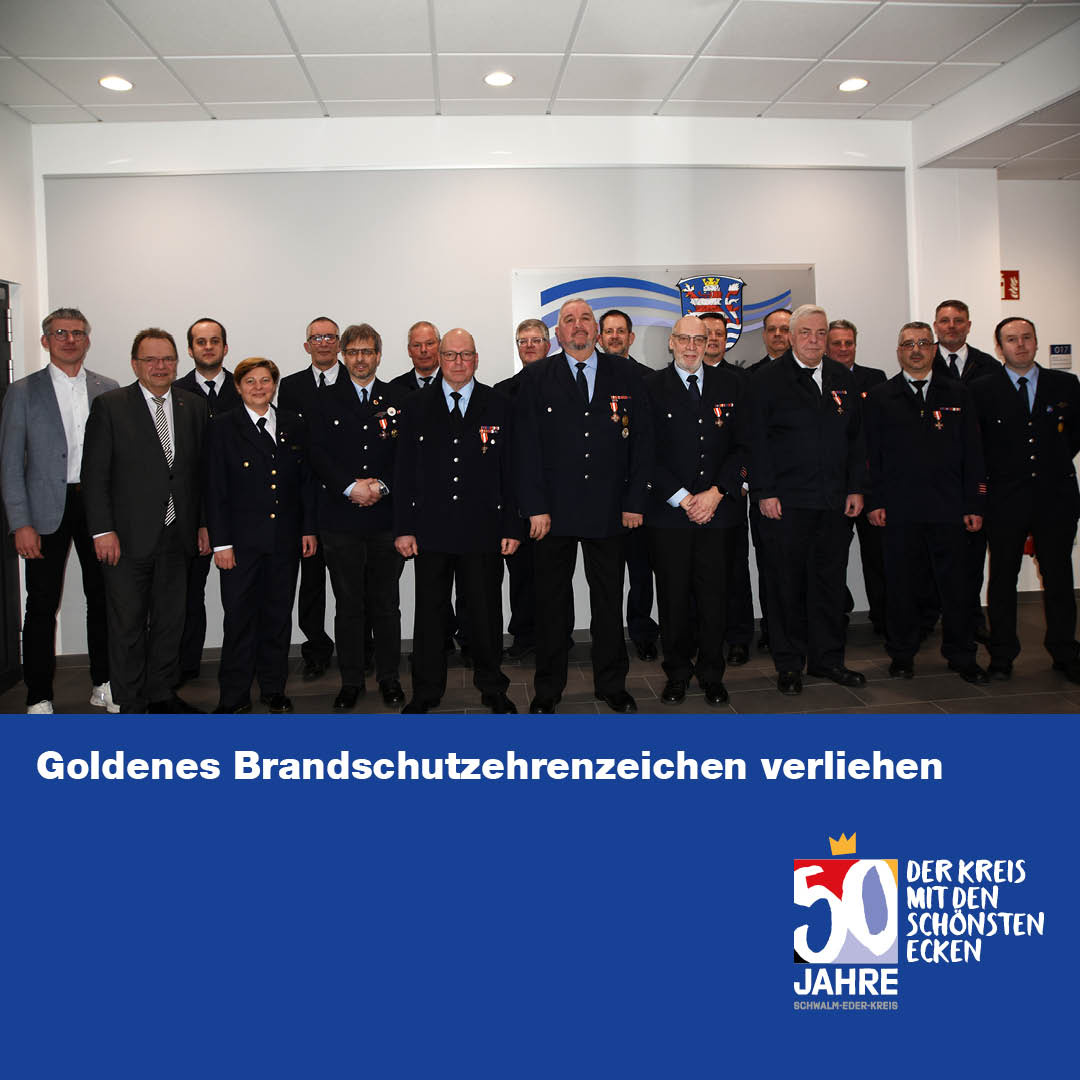 Sie leisten seit 40 Jahren bzw. 50 Jahren aktiven Dienst für ihre Mitbürgerinnen und Mitbürgern. Vor Kurzem durfte Landrat Winfried Becker sieben Mitgliedern der Freiwilligen Feuerwehr Felsberg, Homberg und Malsfeld mit dem Goldenen Brandschutzehrenzeichen und ein Mitglied der Feuerwehr Felsberg mit der Sonderstufe des Goldenen Brandschutzehrenzeichens auszeichnen. Sie sind 365 Tage im Jahr rund um die Uhr in Alarmbereitschaft und stets zur Stelle – nicht nur wenn es brennt, sondern auch bei technischen Hilfeleistungen, wie etwa bei Unfällen oder Unwetter-Ereignissen.